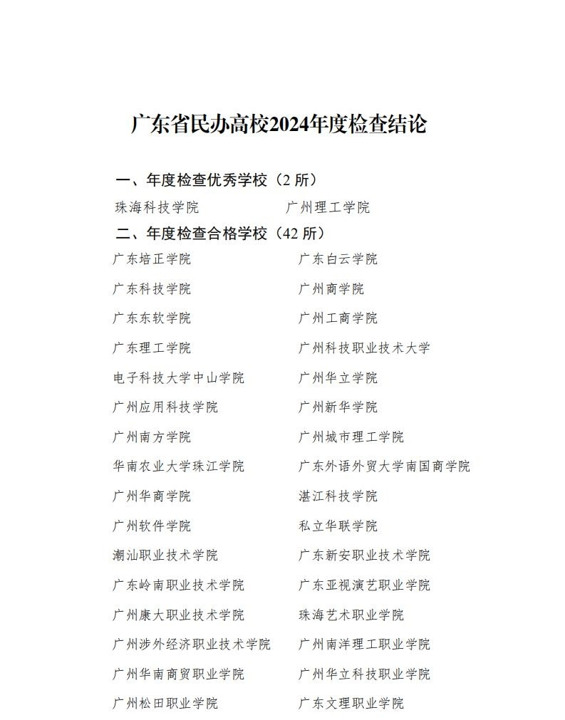 万银配资 广东省教育厅关于广东省民办高校2024年度检查结论的公示