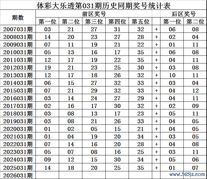 王守礼体彩大乐透第2026031期历史同期定位升重降号码分析: